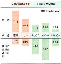 雨水が森林の土壌を通過することにより、窒素やリンが吸着され、きれいな水に生まれ変わります。