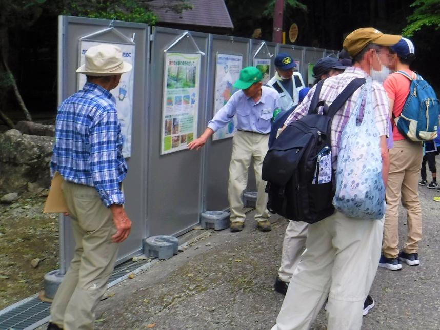 午前中は水源林トレッキング、水生生物観察、森林癒やし、成長の森見学の4つのコースの中から、それぞれの興味にあわせて参加したいコースを選んでいただきました。