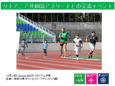 また、東京2020オリンピック・パラリンピック大会に向け、平塚市は、リトアニア共和国と事前キャンプの協定を結んでおり、10月にリトアニア共和国のアスリートが平塚市を訪れ、市民との交流イベントを行いました。オリンピックはトップアスリート同士の戦いですが、影響を受け、観ているだけではなく、やってみようという気持ちにもなる人もいるでしょう。