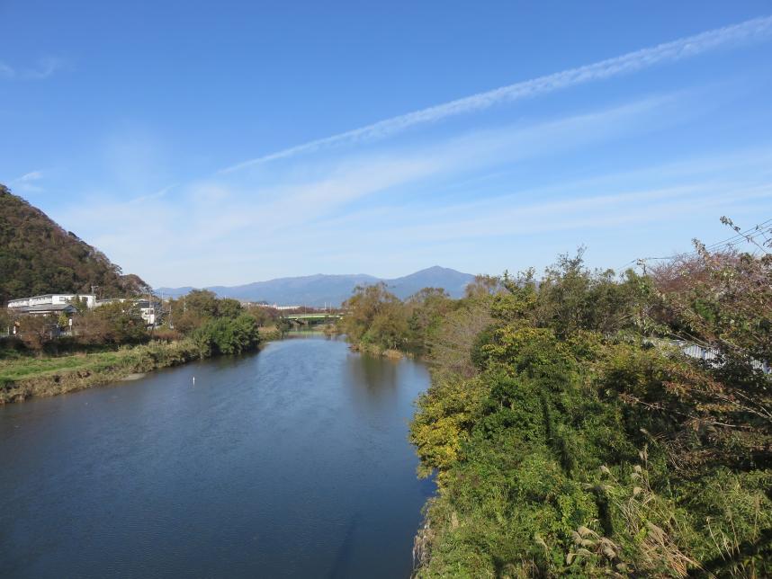 「古花水」停留所から国道1号線沿いを歩き、花水川を渡ると、ぽっこりとした「高麗山(こまやま)」の姿が見えてきました(写真下左)。かつては、松で覆われた山だったそうですが、現在は、山頂に1本残るだけとか。(写真の、少しだけ緑の濃い木、お分かりになるでしょうか…?)