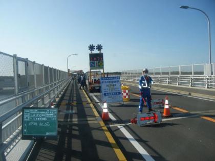 ※写真は、令和2年度城ケ島大橋機能保全工事における交通規制の状況です。