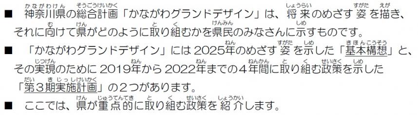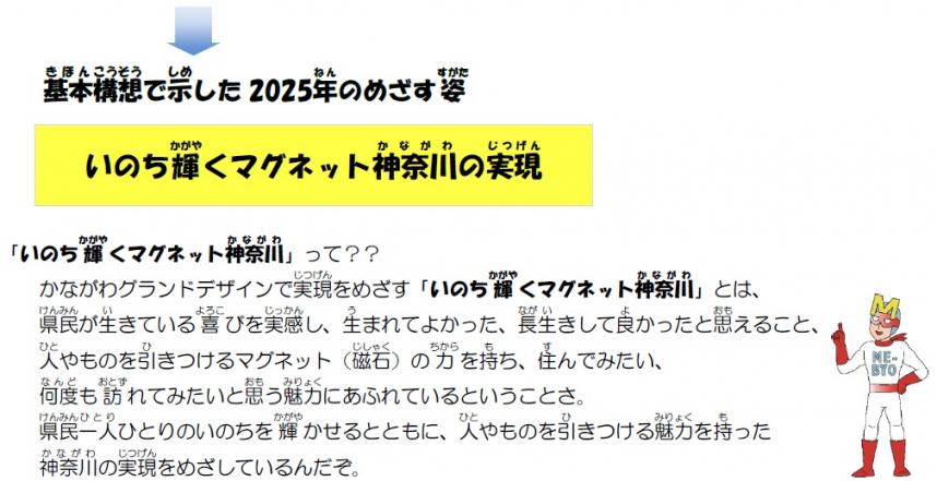 ホーム > 電子県庁・県政運営・県勢 > 県政情報 > 総合計画 > かながわグランドデザインってなに・・・かな?