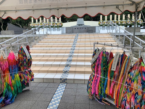 式典後、雨があがりましたので、「神奈川の塔」に折り鶴を献納いたしました。