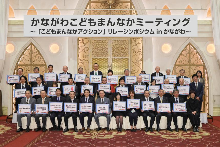 県では、こども家庭庁の「こどもまんなか」の趣旨に賛同し、子ども・子育てにやさしい社会づくりのための意識改革を図るため、「子育て不安解消宣言!」を掲げ、令和5年7月14日に知事と神奈川県庁が「こどもまんなか応援サポーター」に就任しました。