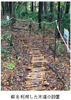 木道の設置については、当会で作った薪を利用して整備を行うこととし、25メートルの観察用木道を完成させることができました。