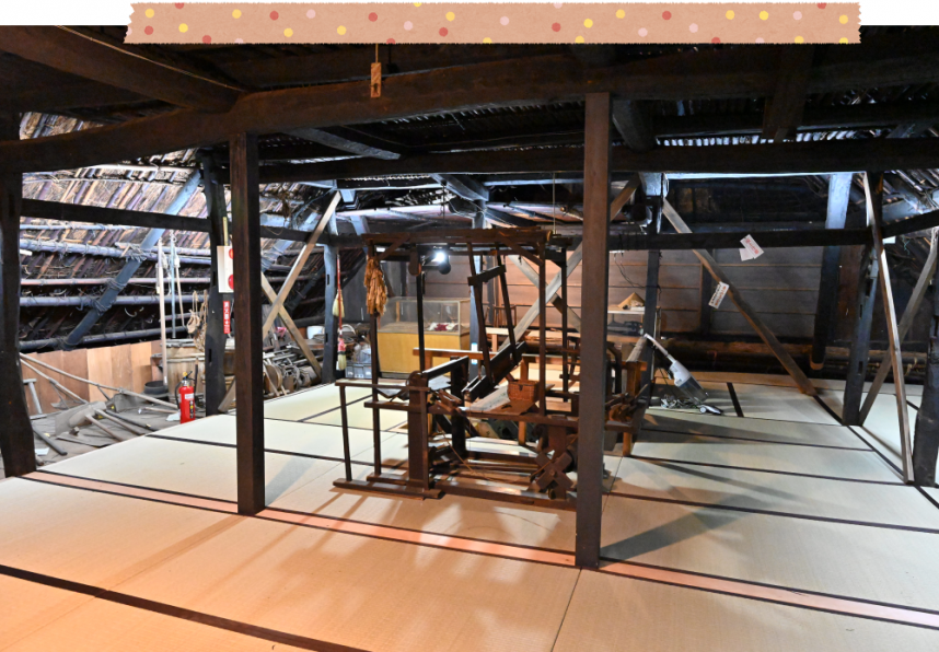 2階は、以前養蚕をしていたそうですが、現在は昔使用されていた養蚕にかかわる道具や農機具等が展示されています。