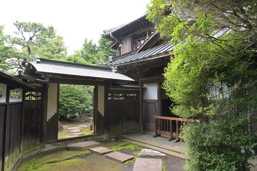外側から見た玄関。「式台玄関」と呼ばれる様式のもの。