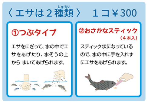 相模川の魚を身近にみることができます。また、魚たちに「ごはん」をあげる体験もできますよ。