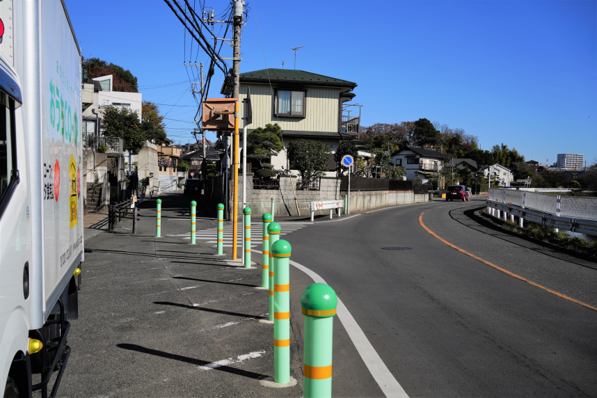 護王姫の碑を後にし、市道2号線を少し進むと、Y字路に差し掛かります。ここを左へ。