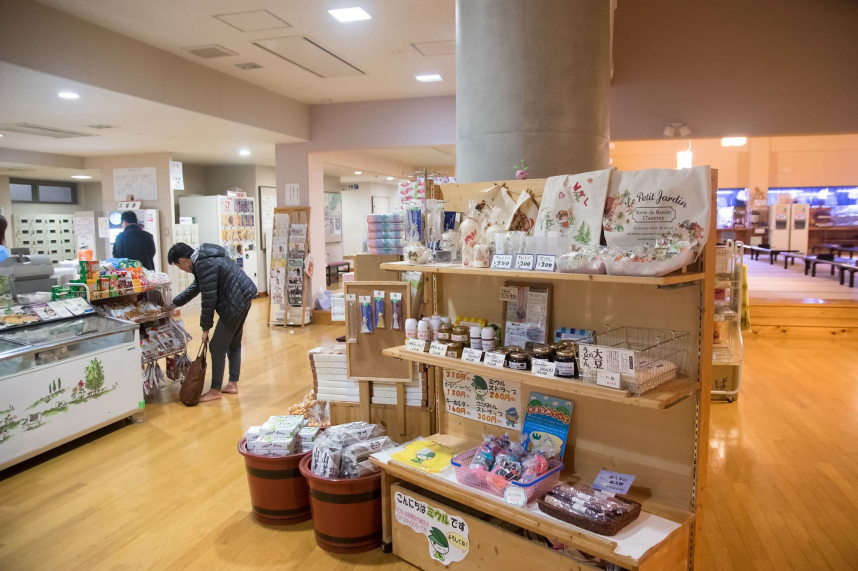 お湯から出たら、80畳の休憩室でくつろぎましょう。ここではお食事もできます。ジュース、ビール、アイスクリームの自動販売機も用意されております。