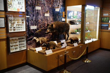 最初のコーナーは、大地に関する展示があります。その奥には、愛川町周囲の渓谷の植物や里山に住む動物の展示があります。