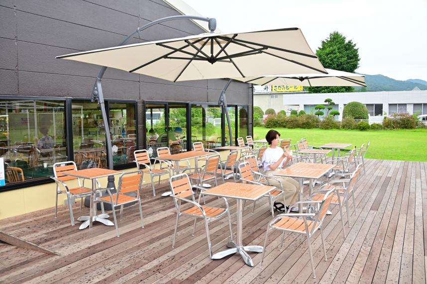 お店の中を抜けた外には、テラス席があり、食事ができます。