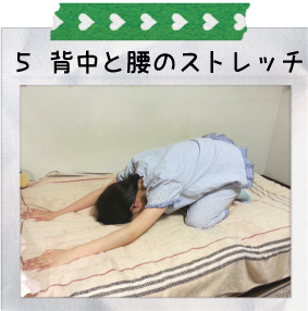 両腕の間に頭を沈めながら、背中と腰を伸ばします。