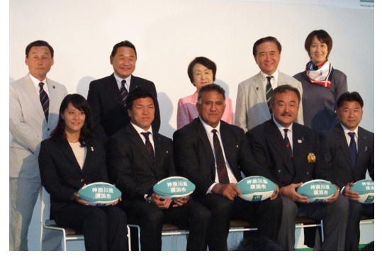 2019年9月に開幕するラグビーワールドカップ2019TM日本大会の2年前を記念して、平成29年9月18日(月曜日・祝日)に横浜市のMARKISみなとみらい1階グランドガレリア、グランモール公園で「ラグビーワールドカップ2019TM大会2年前イベントinYOKOHAMA」が開催されました。イベントでは、開催都市特別サポーターの委嘱式や著名人のトークイベントなどが行われました。