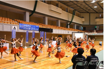 〇車いすバスケットボールのエキシビション〇会場全員でエアロビック