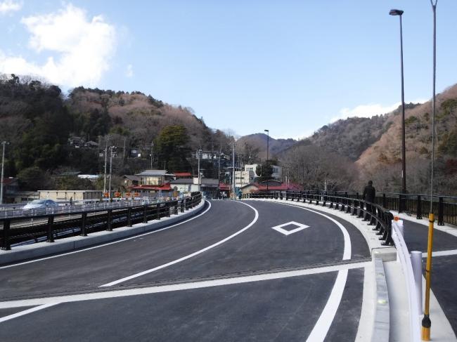 新しい橋への架け替えにより、総重量20tまでの大型車両のすれ違いが可能となり、交通安全の確保が図られるとともに、交通利便性の向上が期待されます。