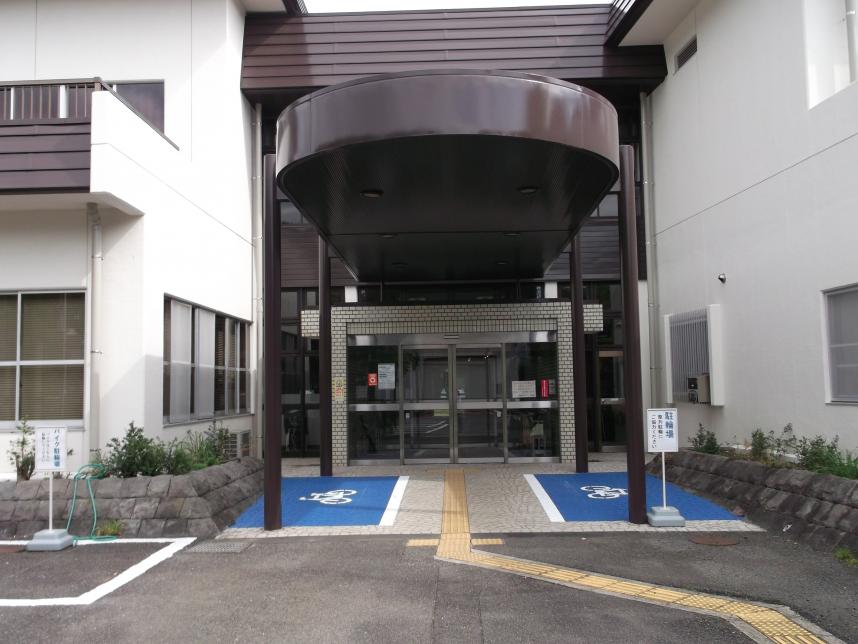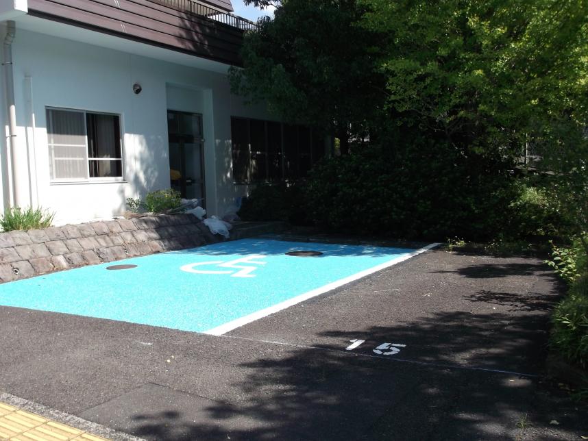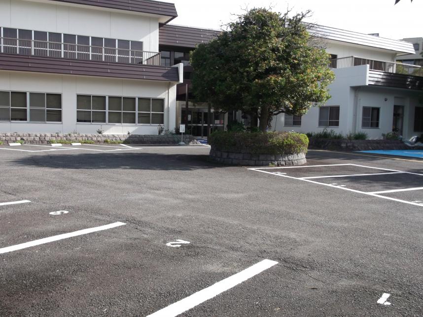駐車場(全景) | 車椅子用駐車スペース | 庁舎正面玄関(駐輪場) |