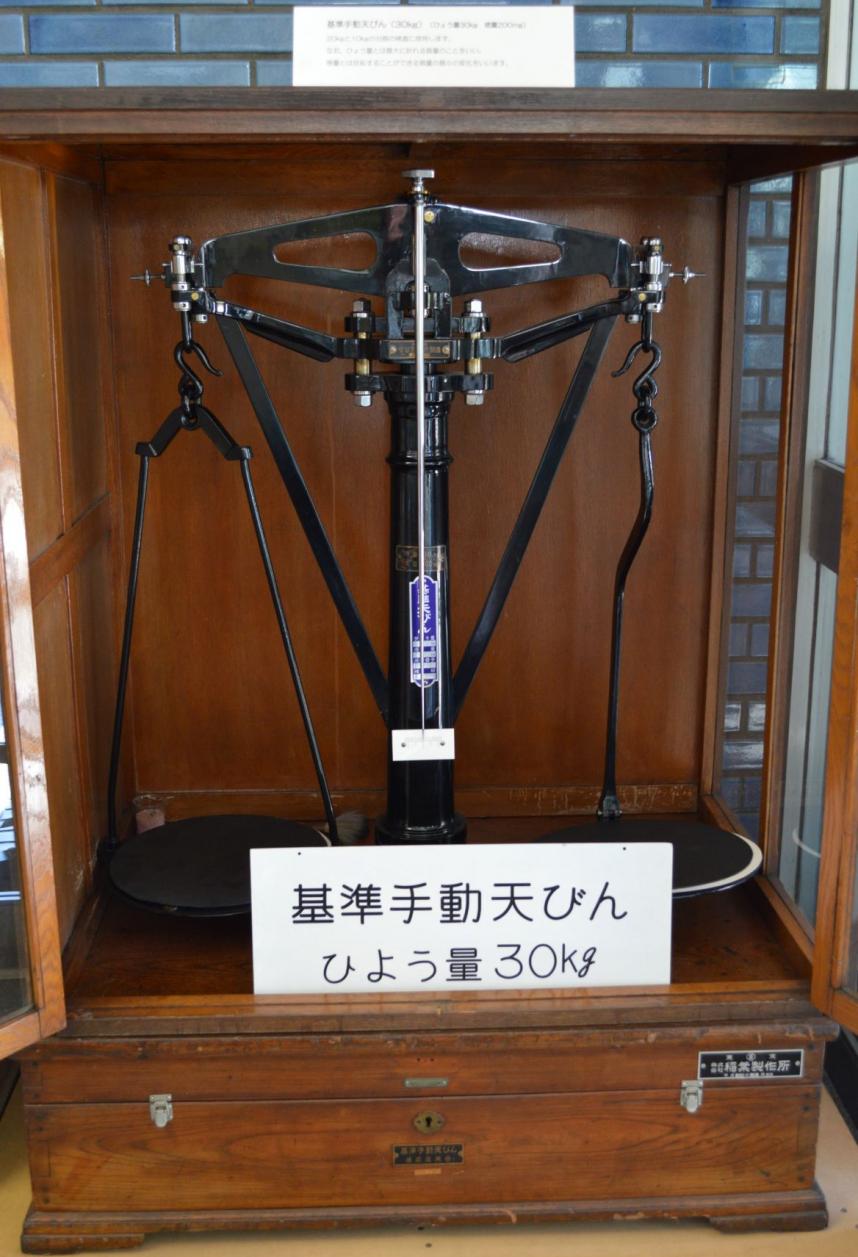 長尺やはかり、天びん、温度計、一合升など様々な展示があります。