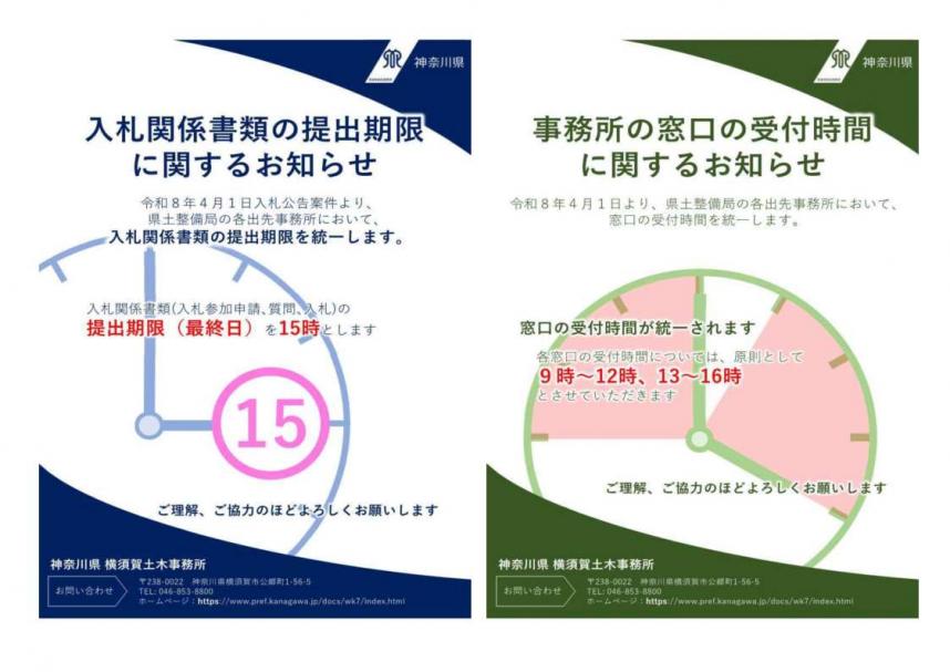横須賀土木事務所 > 入札関係書類の提出期限及び窓口受付時間に関するお知らせ