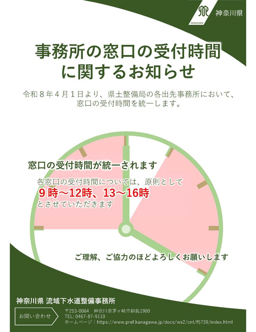 令和8年4月1日より、原則として9時から12時、13時から16時とさせていただきます。