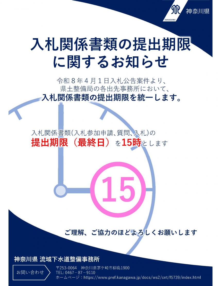 令和8年4月1日より県土整備局出先事務所において、次のとおり入札関係書類の提出期限等を統一させていただきます。