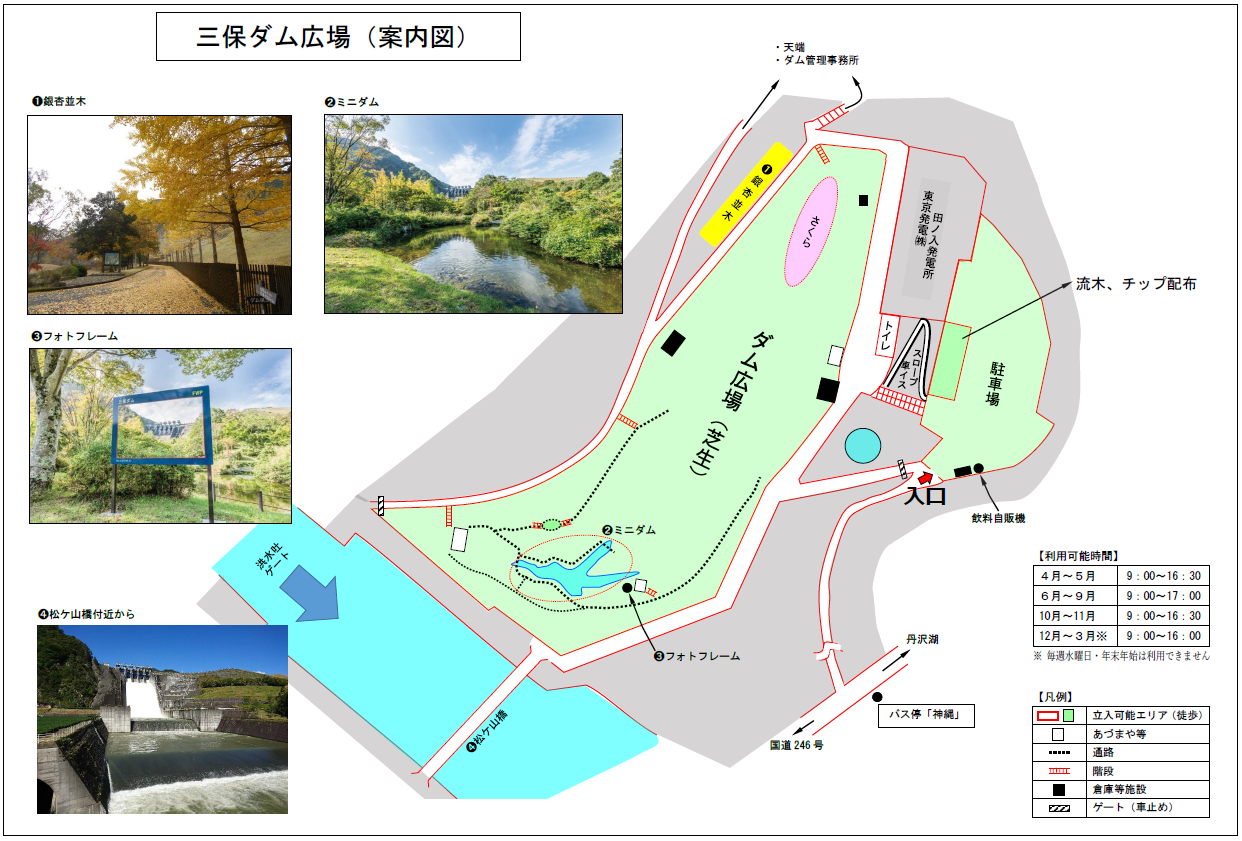 三保ダムの堤体直下にある三保ダム広場の紹介ページです。