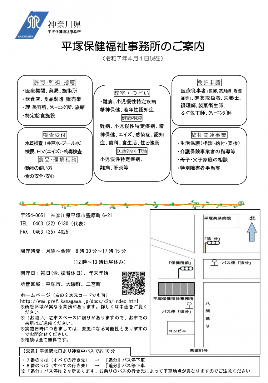平塚保健福祉事務所のご案内(令和7年4月1日現在)(PDF:493KB)
