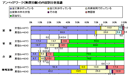 グラフ アンペイドワーク(無償労働)の内容別分担意識