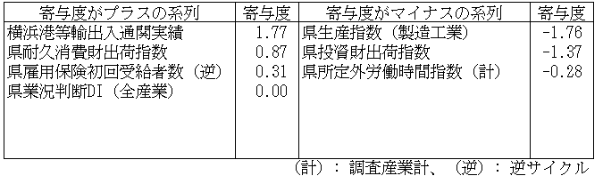 神奈川CI一致指数の前月差に対する個別系列の寄与度
