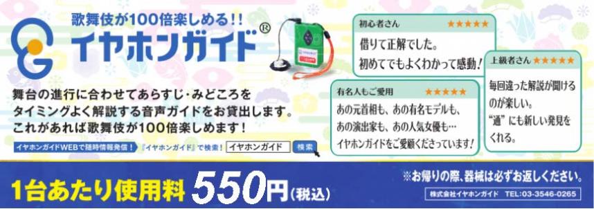 歌舞伎を同時解説でわかりやすく、より一層お楽しみいただけます。