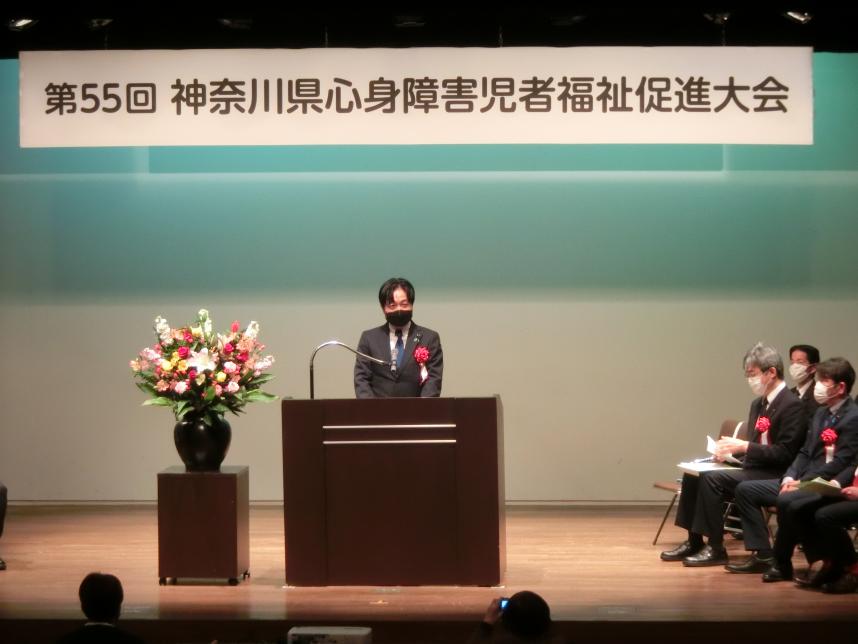 横浜市健康福祉総合センター(横浜市中区)で開催された「第55回神奈川県心身障害児者福祉促進大会」に出席しました。