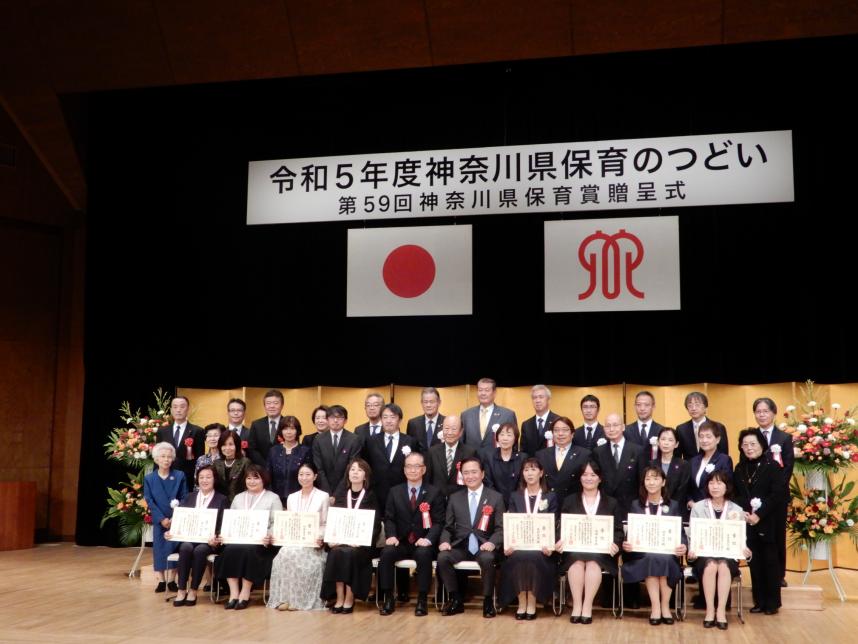 このつどいでは「第59回神奈川県保育賞贈呈式」が行われ、保育士として多年、県内児童福祉施設に勤務し、すぐれた業績をあげられた8名の方が保育賞を受賞されました。