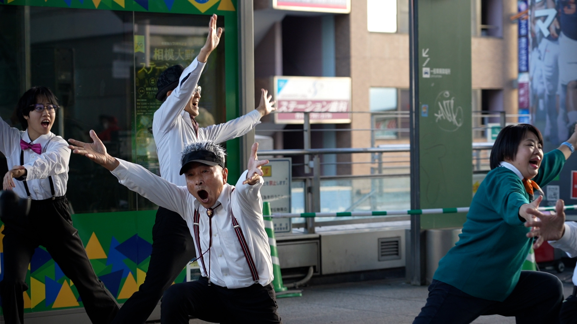 地区のケアプラザで活動し、各地のイベントや商店街に、(出)かけて、(舞)い、ダンスを(一丁)お届けしてます。