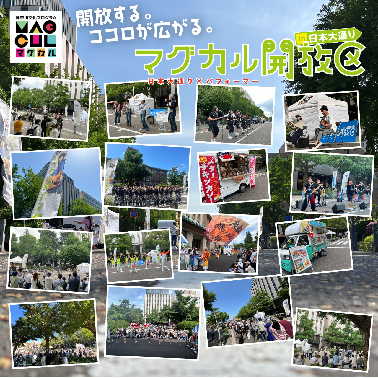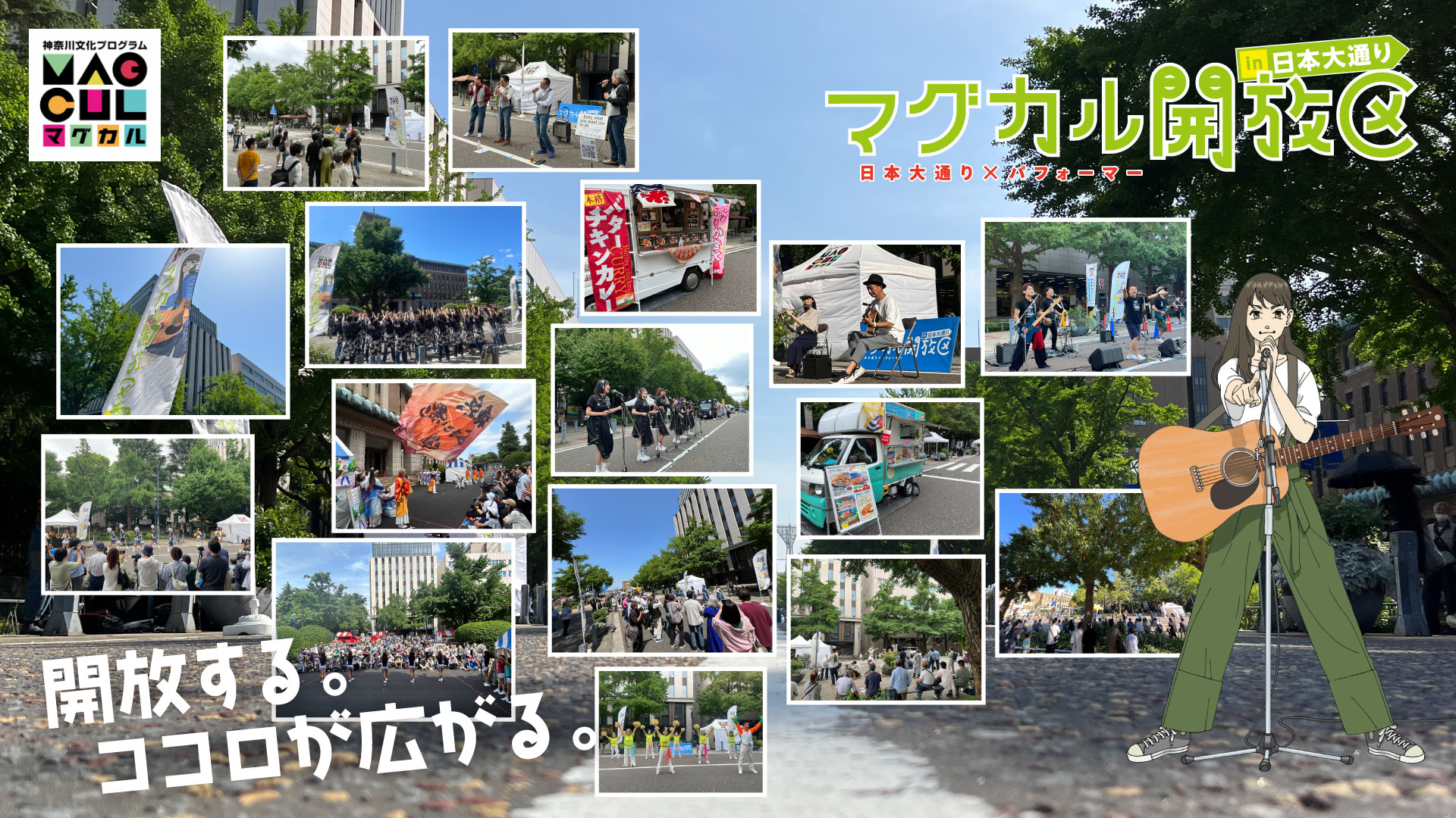 日曜日の午前9時から午後5時まで、県庁前の日本大通りを歩行者天国にして、音楽やダンス、大道芸などのパフォーマンスを自由に発表できる空間「マグカル開放区」を開催します。