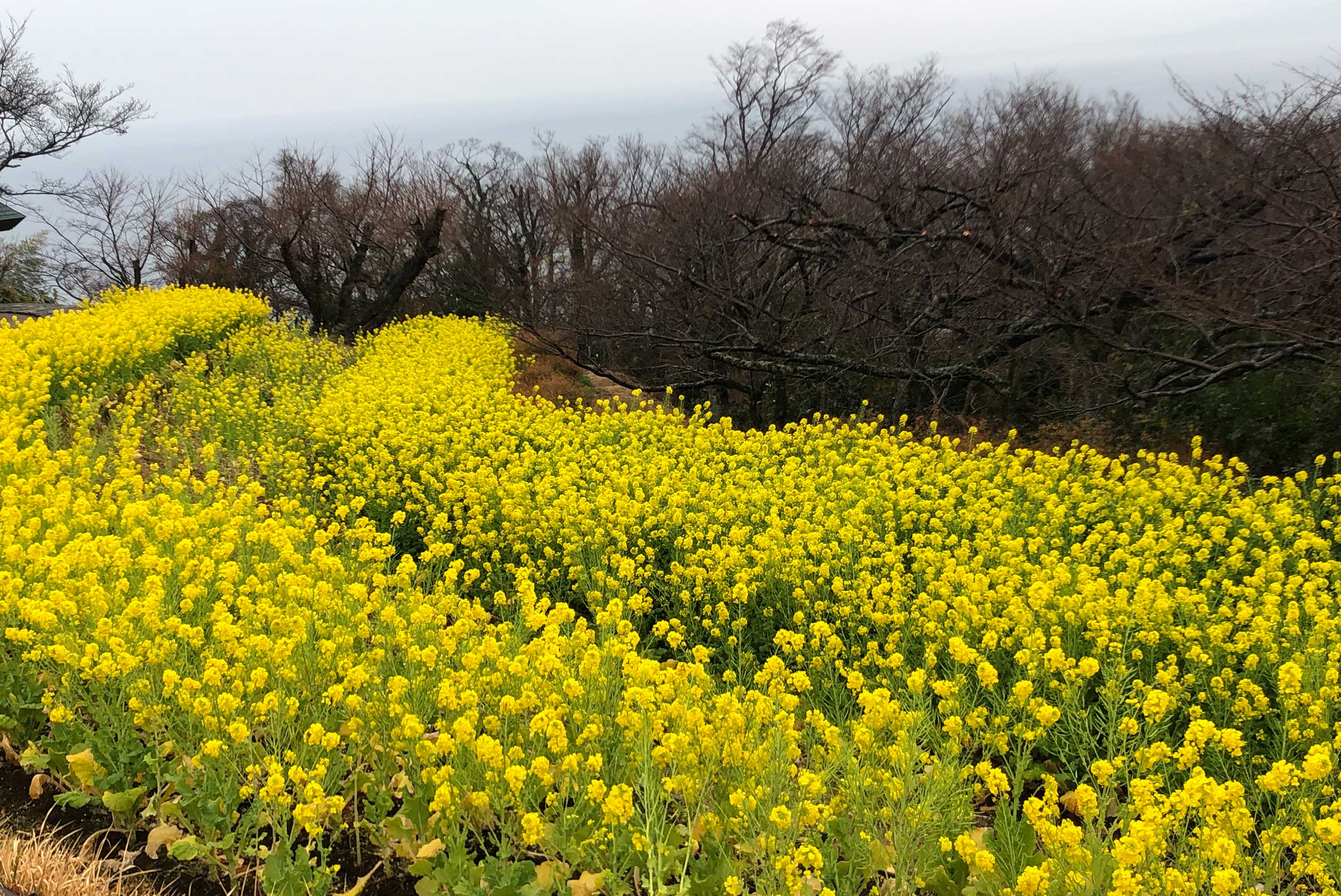 晴れていたら、相模湾から富士山をバックに素晴らしい菜の花畑を眺めることができる二宮町の吾妻山公園。雨模様ではありますが、イベント当日、恋カナ!スタッフが撮ってきた菜の花畑の様子をご紹介します。ぜひ、マッチングした方と一緒に、改めて四季折々の花景色を楽しめる吾妻山公園を訪れてください!