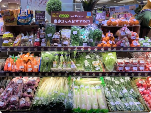 近郊で栽培した野菜・果物を取り扱うコーナー