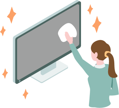 - ・1週間に1度は乾いた柔らかい布(表面に傷がつかないよう配慮された専用クロスなど)でふきましょう。