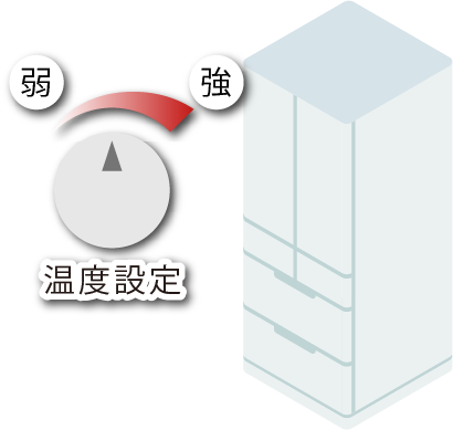 - ・庫内の温度を控えめに設定すると消費電力が少なくなります。ただし、食品の痛みには注意してください。