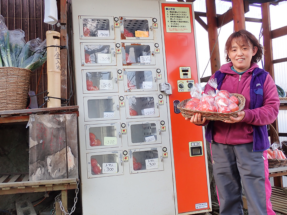 トマトの周年栽培をして、途切れることなくトマトの出荷をしています。直売所を作り、地域の人に新鮮な野菜を届けています。