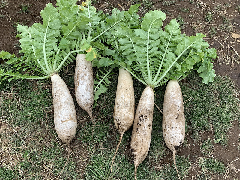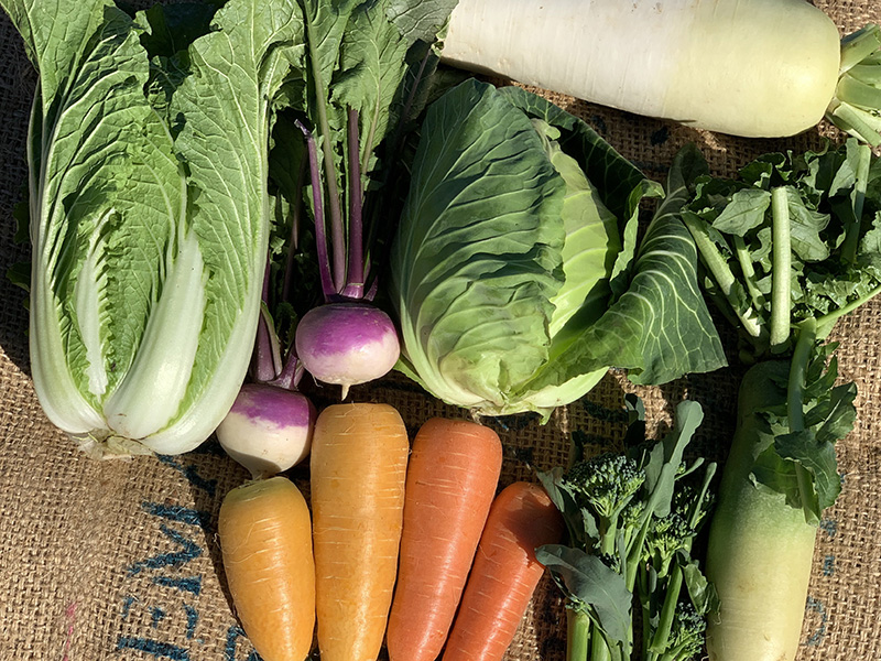 スイートコーン、エダマメ、カリフラワー、ニンジン、ダイコンなど年間20種類程度