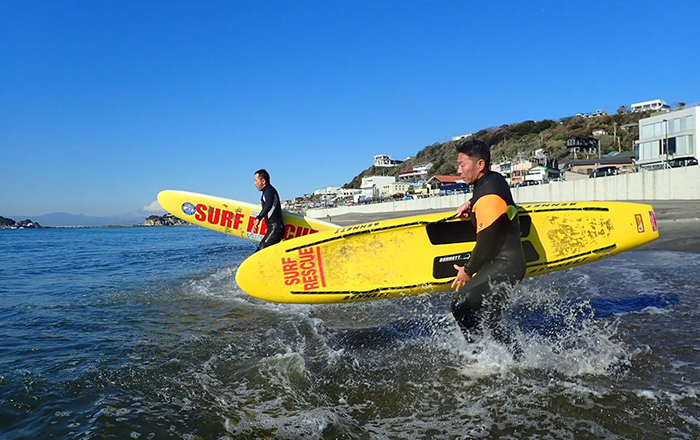 Their main activities include training and patrolling the Kugenuma Coast area every weekend from April to September. Furthermore, they also perform surveillance and rescue activities every Sunday from October to March using the monitoring room and first aid room in Surf Village. In addition, they also plan and organize junior lifesaving programs for children, students, parents, and also conduct PR activities to promote awareness of lifesaving activities.