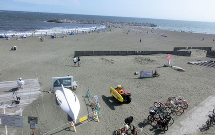 Shichirigahama Beach, which overlooks Inamuragasaki to the east and Enoshima to the west, is close to Enoden Shichirigahama Station and has a large parking lot. During the summer season, the number of surfers increases, and not only local people but also people from outside the area flock to enjoy the beach and the water.