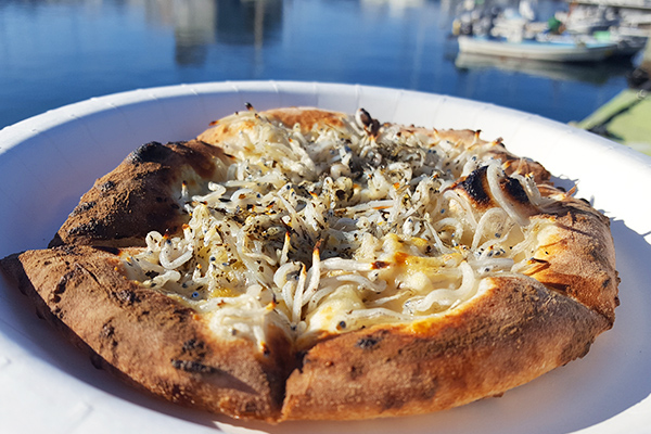 One of the features of Hayama's Sunday Morning Market is its menu of dishes that can be enjoyed immediately. Tables are even set up along the oceanfront, and you can enjoy freshly baked pizza, soup, soba noodles, and much much more!
