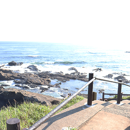 As you go down the stairs on the promenade, you can get a close-up view of Umanose Cave, a sea-eroded cave that was created by erosion from the sea over many years.
