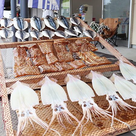“Urari Marche” has a lively fish market that sells tuna, local fish, processed seafood products, and Miura brand products, as well as fresh vegetables and processed products grown in Miura. There is a vegetable shop. In addition to souvenirs, there are also plenty of snacks that you can eat on the spot, so be sure to try them out.