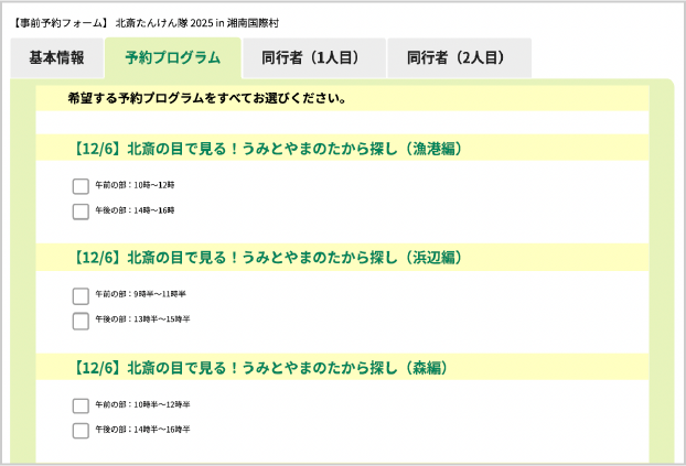 屋外プログラムは荒天時に中止する場合があり、その際は申込者にメールでご連絡します。
