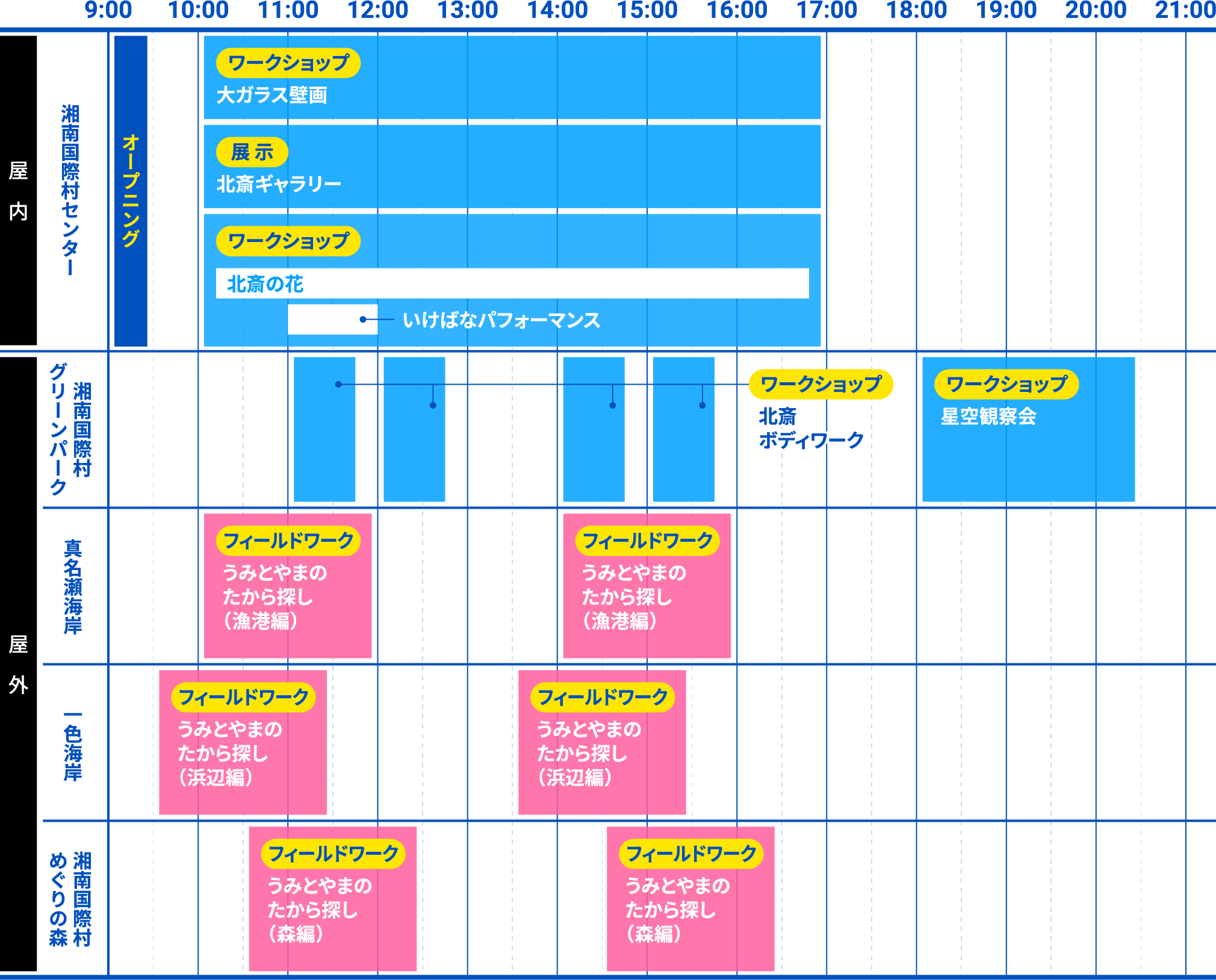 特に自然体験は基本予約制ですが、その他は「当日自由参加OK」のアイコンがあるプログラムは、自由に体験できます。