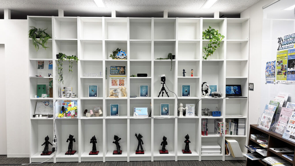 以前は「さがみロボット産業特区」のポスターやテーブル、本棚を中心としたシンプルな内装でしたが、新たに大きなボックス型の棚を設置。