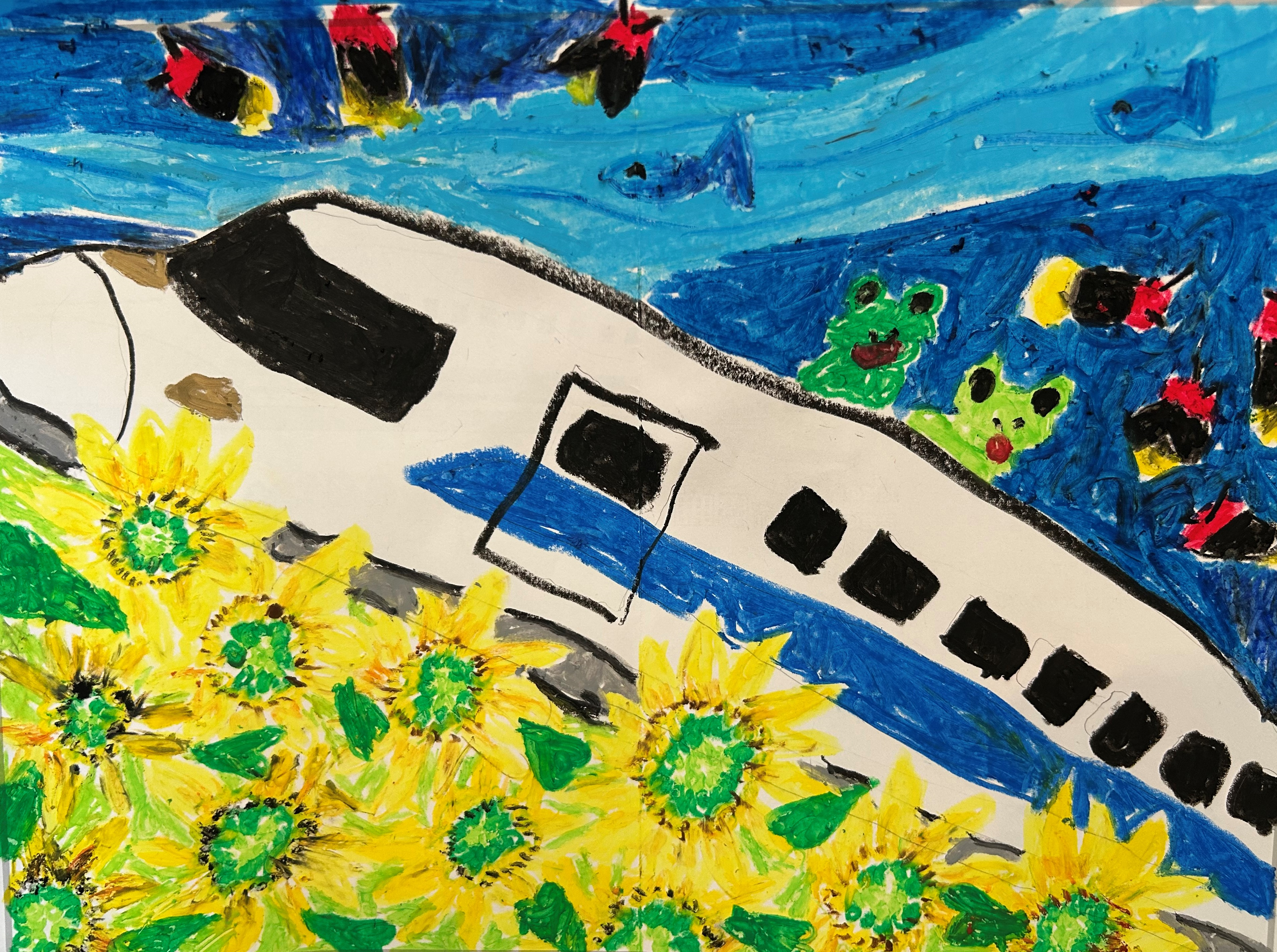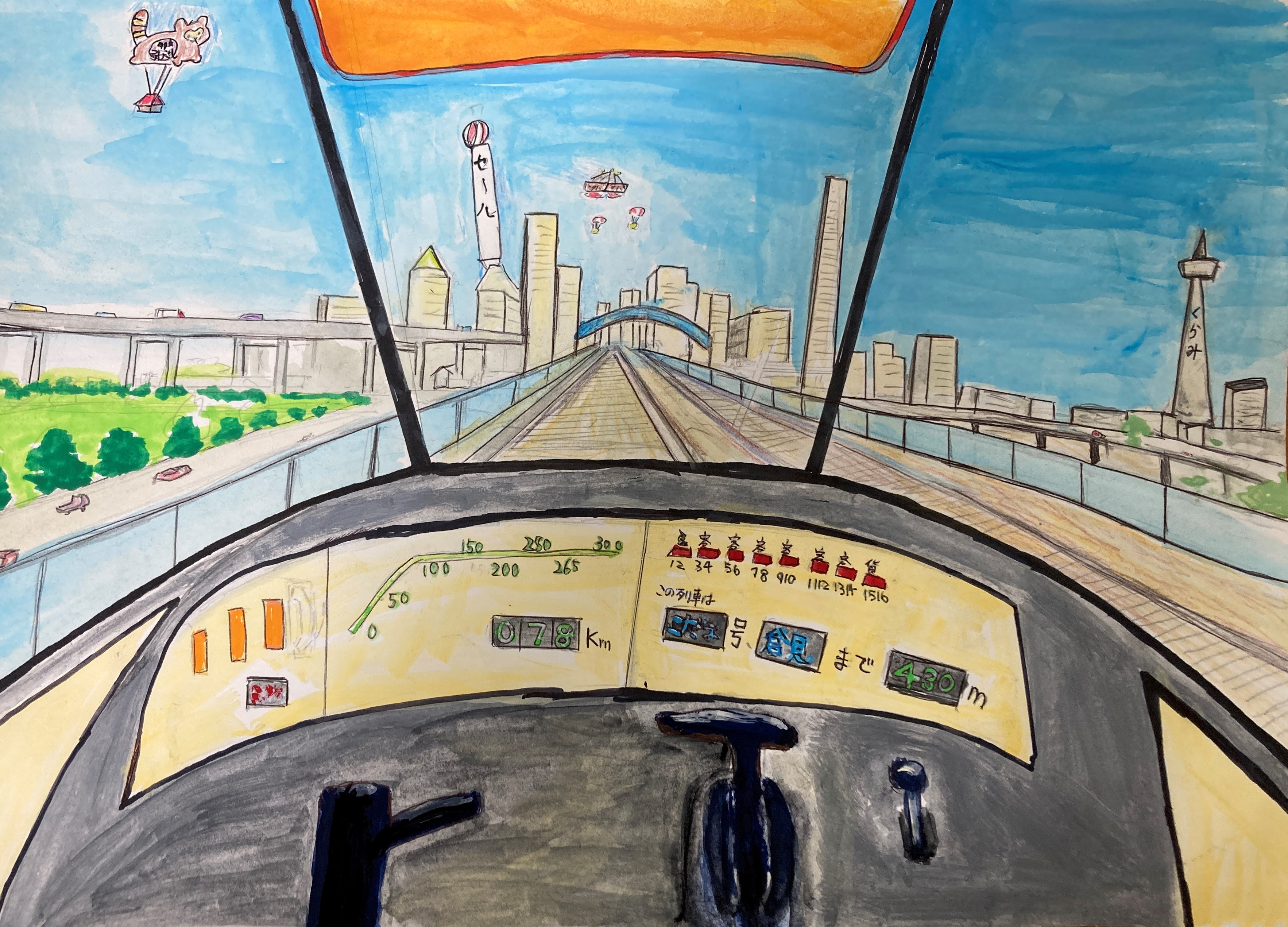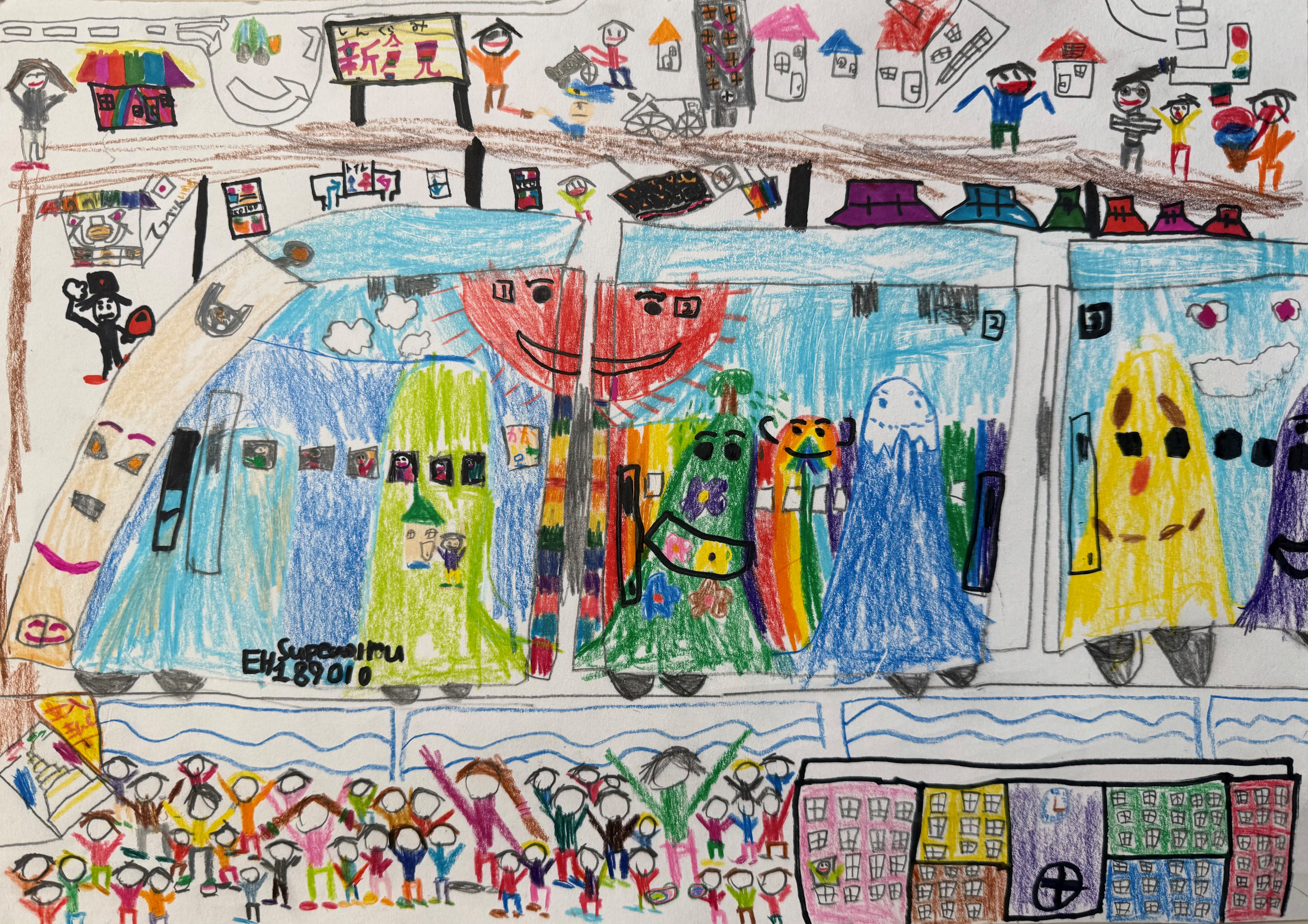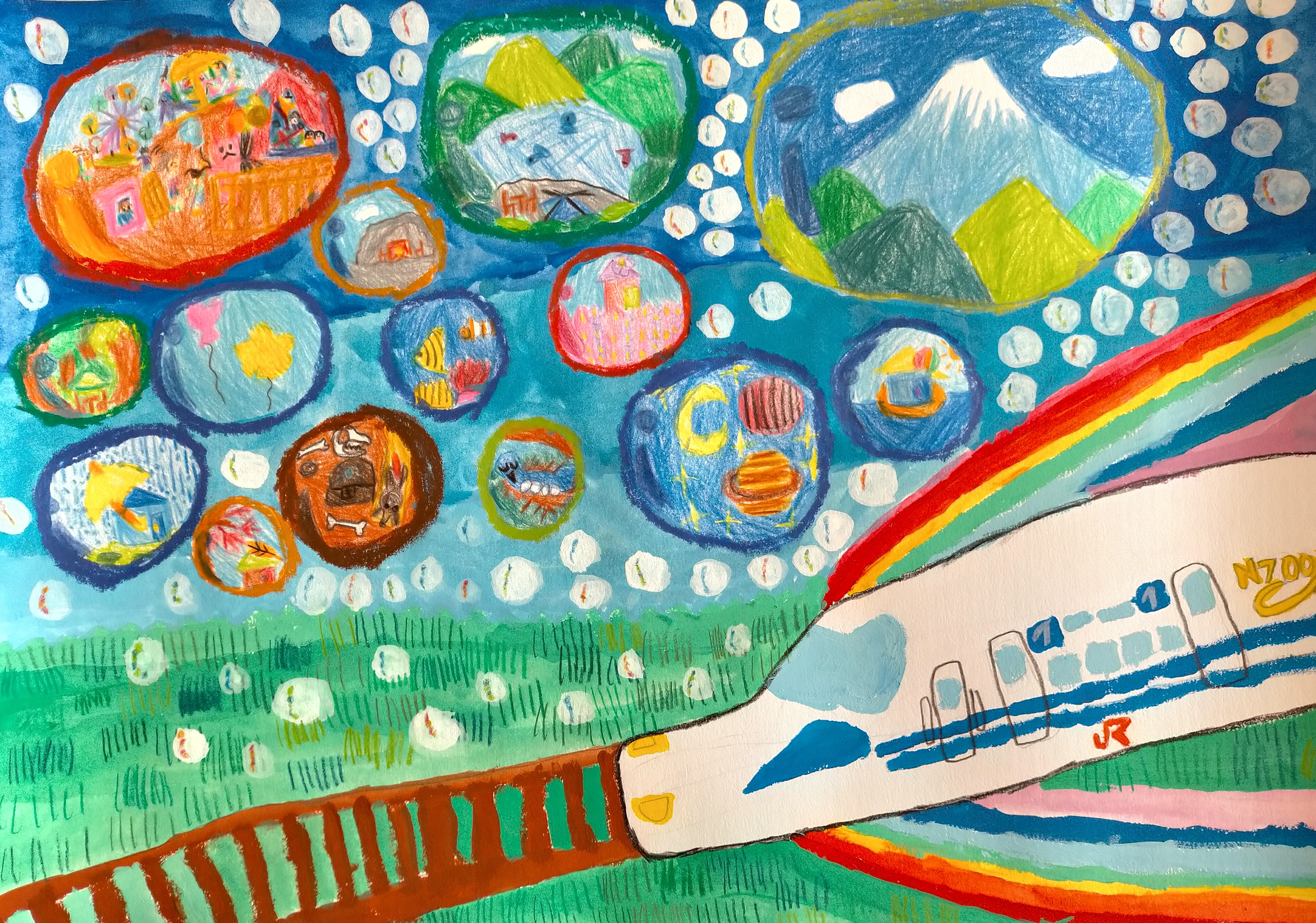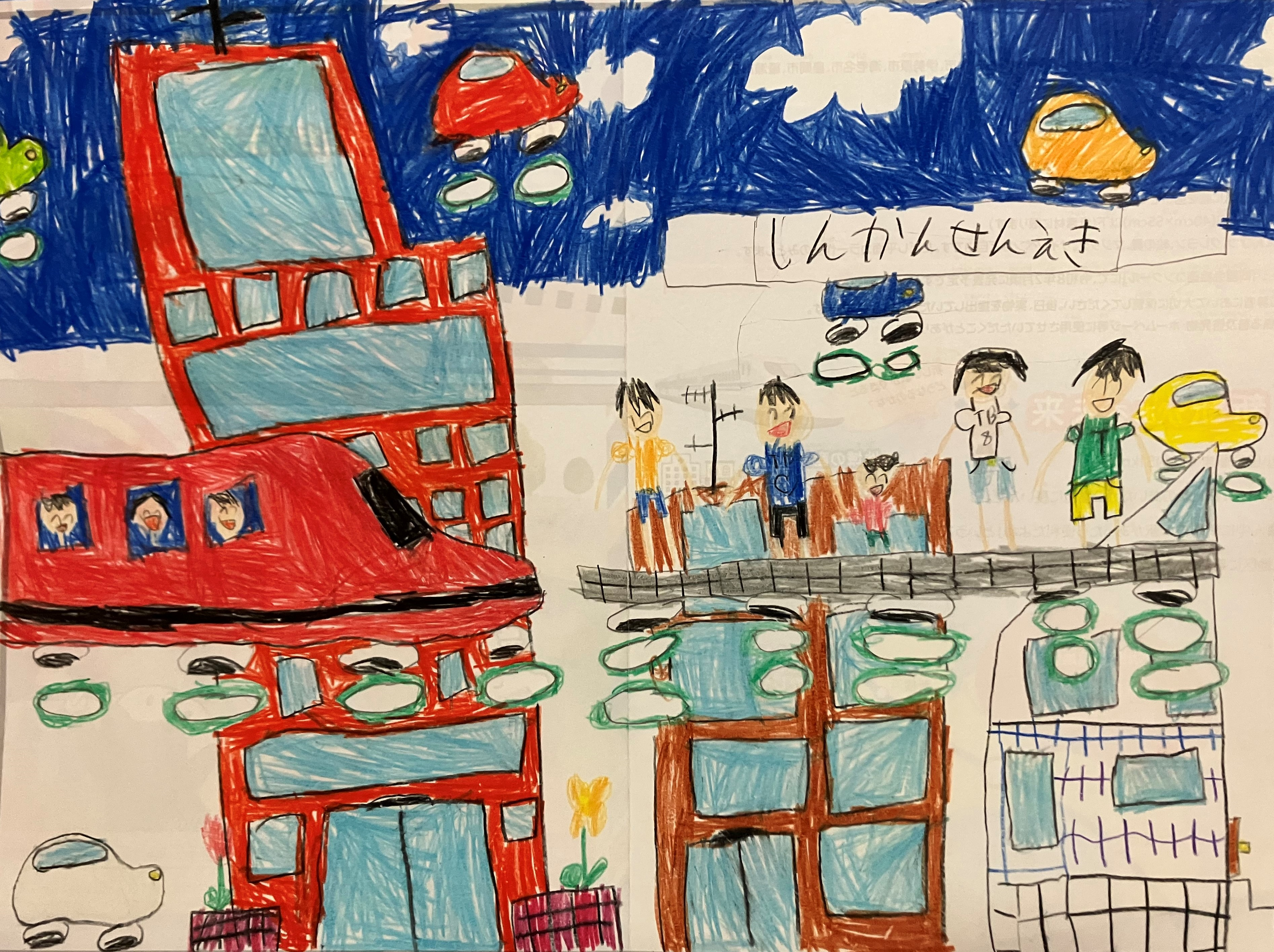 とっておきの「新幹線と未来のまち」を絵に描いてね。