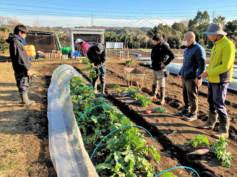 ユニバーサル農園が開園したのは2024年10月。事前に参加を呼びかけると引きこもりなどから社会参加を目指している30~60代の3人が集まりました。障がい者に就労機会や必要な訓練を提供する神奈川ワークショップでは、施設近隣の農地を譲り受けたことをきっかけに、15年ほど前から製パンや印刷などさまざまある作業の1つとして農作業をスタート。現在は知的障がいを持つ8人が就労しています。ユニバーサル農園の参加者は毎週火・木曜にその活動に加わり、ともに野菜作りを楽しみます。活動時間は午前10時から午後3時ですが、いつ来ていつ帰っても良い緩やかな雰囲気です。
